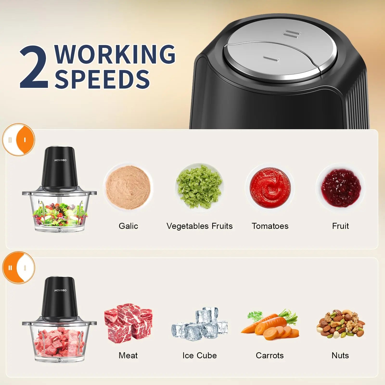 Versatile Cutting Adjustment: With a 2 speed option, this food chopper can meet your different processing needs for vegetables and meat. Speed 1 is perfect for soft or small ingredients, like onion and garlic. Use speed 2 for harder ingredients like meat, ice and baby food.