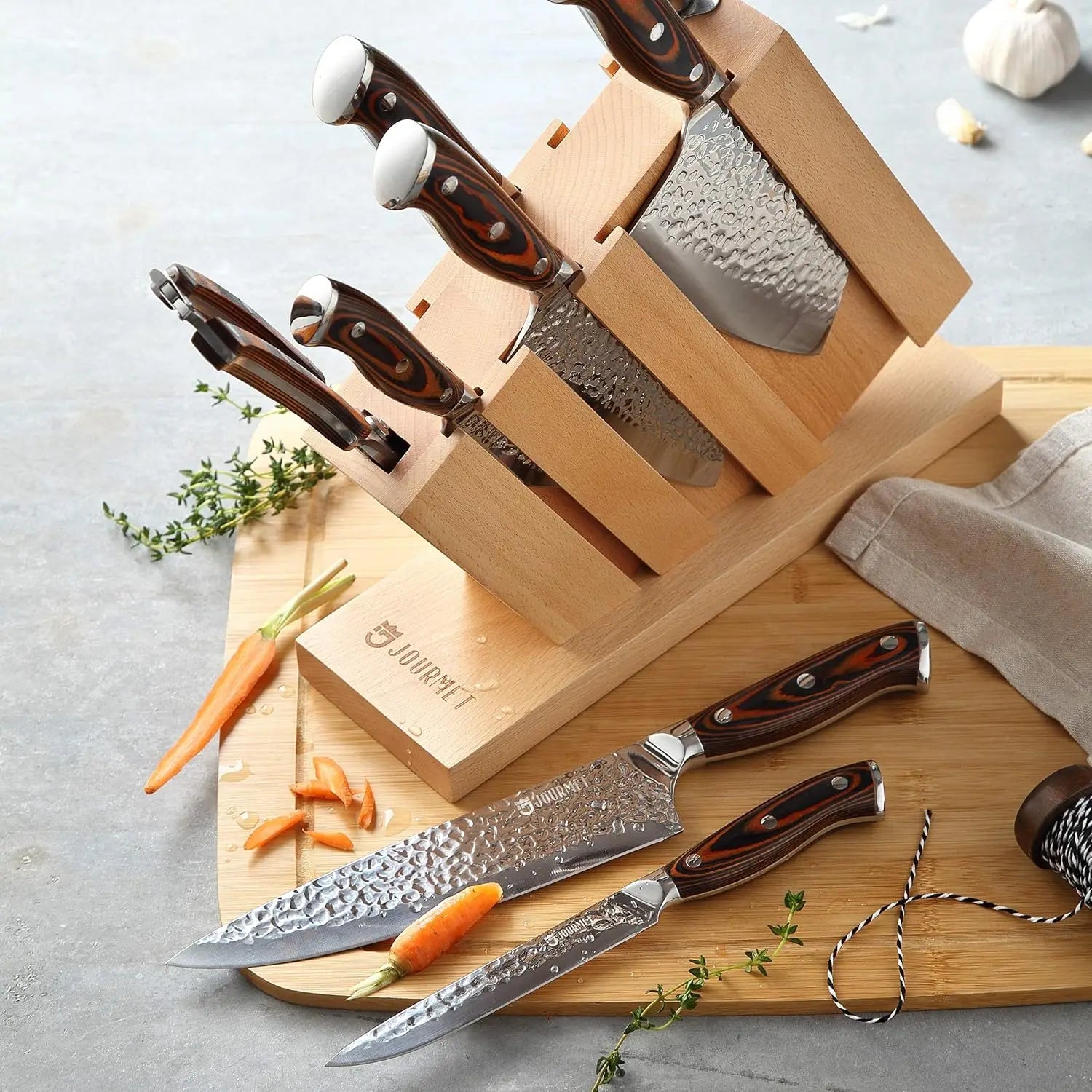 High Carbon Stainless Steel Knife Set with Pakka Wood Handle and Beech Wood Block