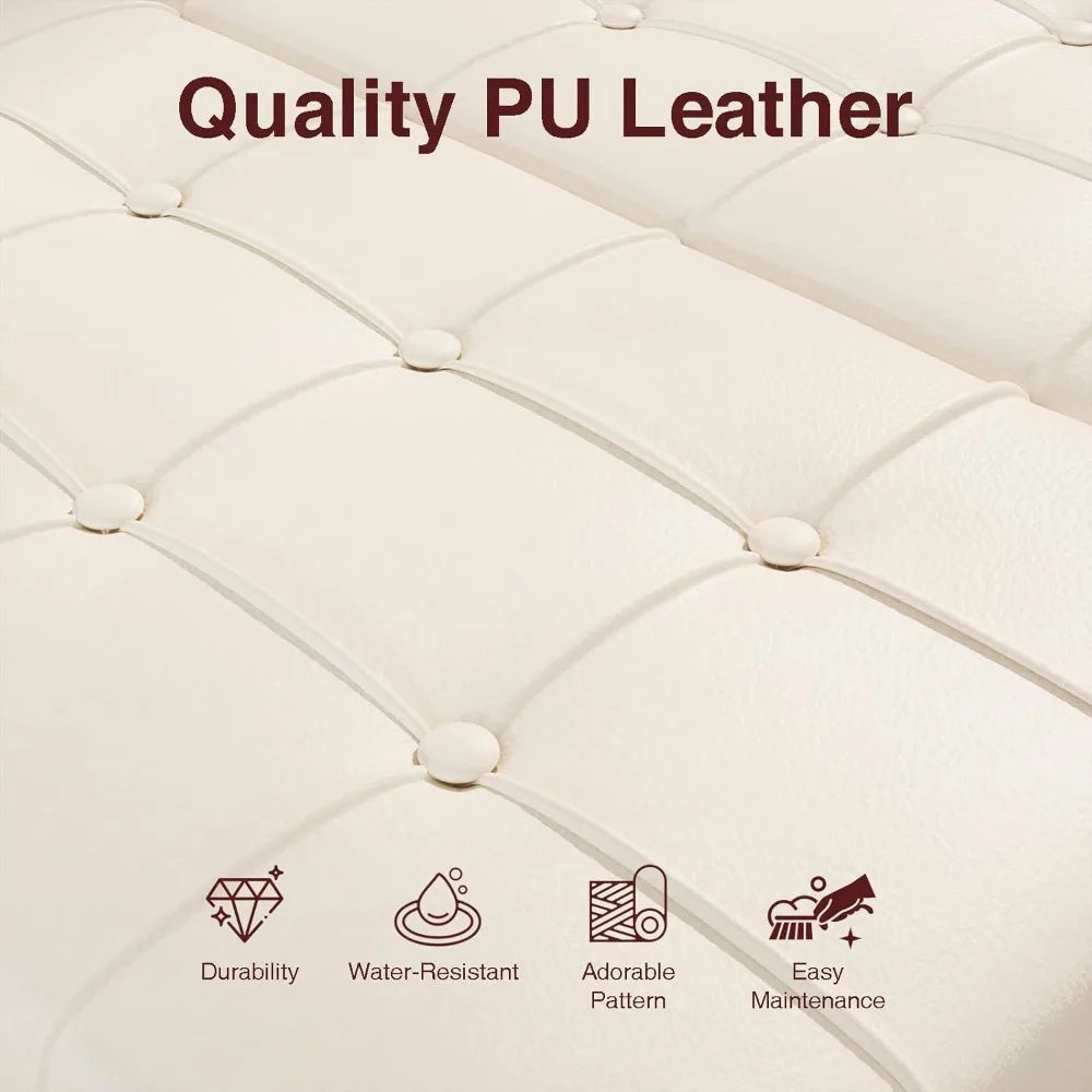 - Aesthetic and stylish Decor: The square leather ottoman is made of high-density foam and faux leather fabric material. Top tufted button decoration and bottom metal rivets locking edge craftsmanship shows the elegant mid-century style